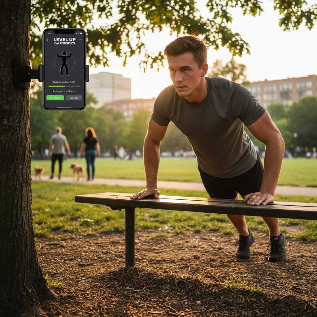 - Progresja do trudniejszych wariantów (pompki na jednej ręce, podciągnięcia L-sit)